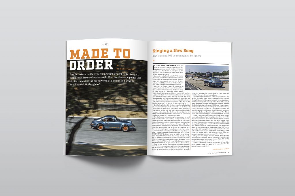 Autoweek was a twice-monthly car culture magazine based out of Detroit. I worked with my team to select bold photography and build engaging layouts for our readers, from car reviews to classic car ownership, motorsport features and in-depth do-it-yourself stories.