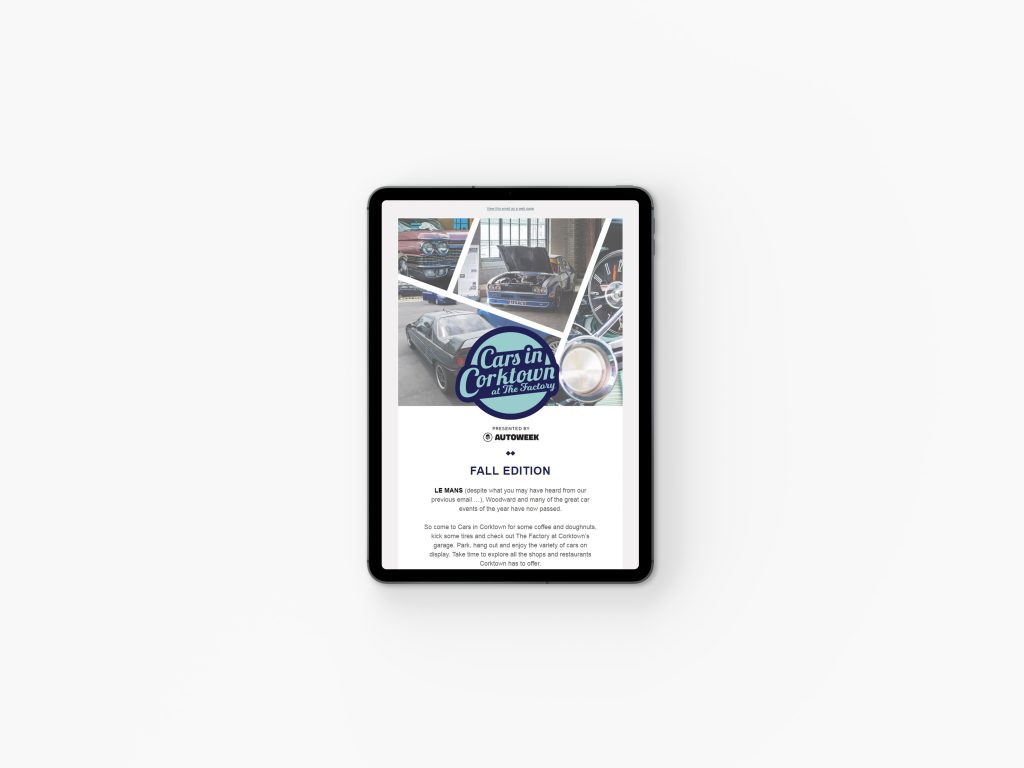 Throughout the year, Autoweek partners with Buhl Sport Detroit to host an open-invitation car show at the Factory in Corktown. I collaborated with my fellow art directors to develop the branding for the events as well as the promotional materials.